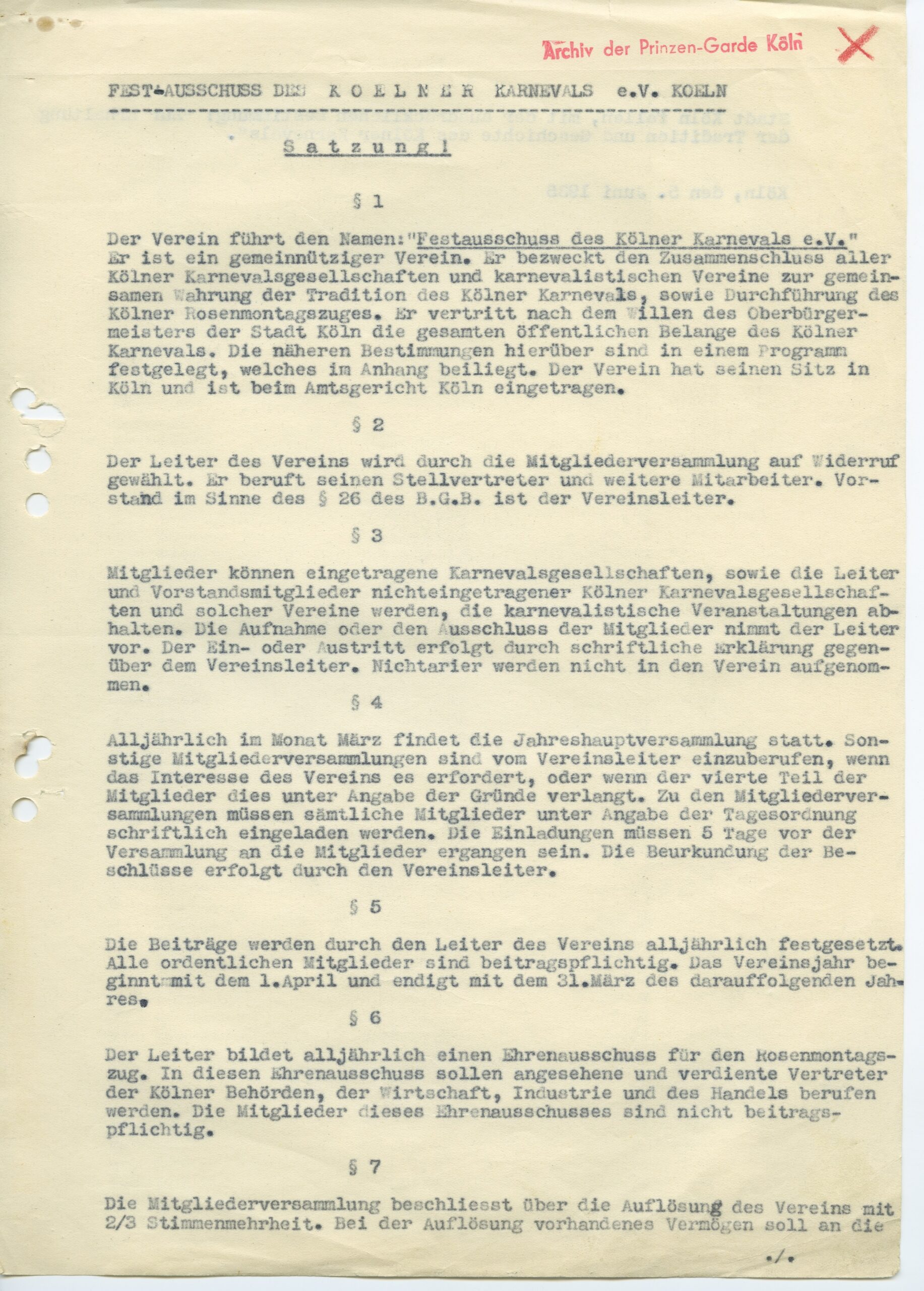 Im Juni 1935 führte der Festausschuss den »Arierparagraphen« ein. Die Kritik der »Funken« richtete sich jedoch gegen andere Aspekte der neuen Satzung.