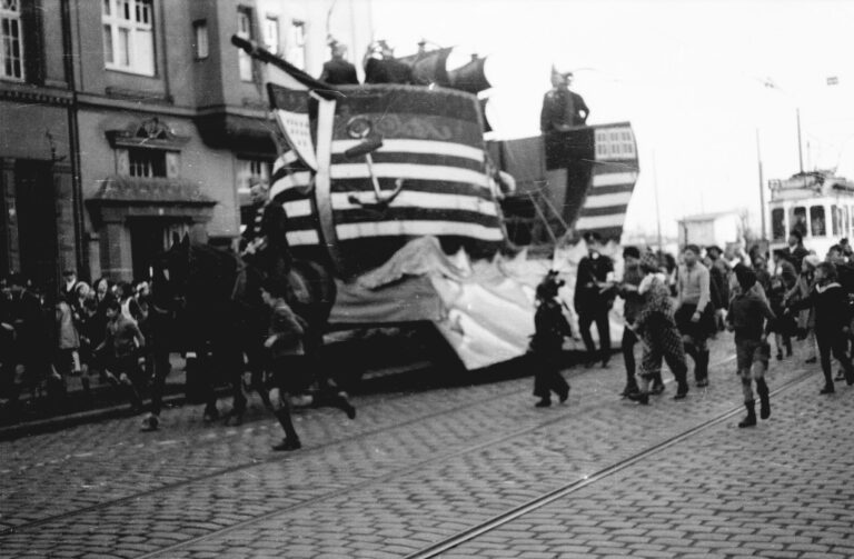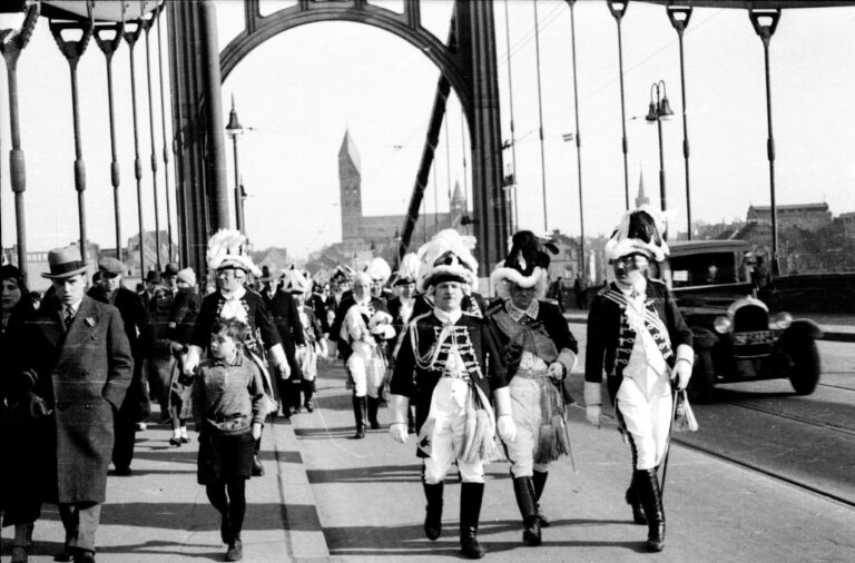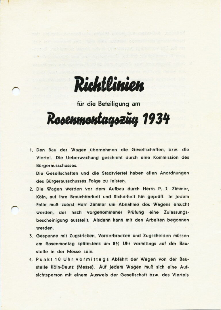 1. Ausstellungsansicht NS-DOK © Rheinisches Bildarchiv rba_d022816_78; 2. & 7. Rote Funken auf der Hindenburgbrücke, 1934 © NS-DOK; 3. Ausstellungsansicht NS-DOK © privat; 4. Richtlinien für den Rosenmontagszug © Privatarchiv Werner Liessem; 5. Rosenmontagszug 1934 © NS-DOK; 6: Rosenmontagszug 1935 © NS-DOK; 8. Hermann Ihle © Archiv der Roten Funken; 9. Wilhelm Schneider-Clauß © Archiv der Roten Funken; 8. Satzung des Festausschusses 1935 © Privatarchiv Werner Liessem; 10. Kritik am Festausschuss, 1935 © Archiv der Roten Funken; 11. Otto Fey © Archiv der Roten Funken; 12. Schreiben von Otto Fey an Rudolf Heß © Archiv der Roten Funken; 13. Auftritt der »Roten Funken« bei einem Großveranstaltung der NS-Organisation »Kraft durch Freude«, 1935 © Privatarchiv Werner Liessem; 14: Wagen der Roten Funken 1934 © NS-DOK 15. Zuschauer*innen beim Rosenmontagszug 1935 © NS-DOK