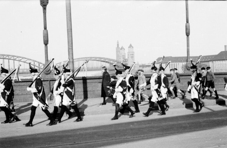 Der Karnevalsverein der »Roten Funken« hat eine lange Geschichte. In den 1930er Jahren waren viele der Vereinsmitglieder Kaufleute oder Handwerker. Sie waren in festen Vereinsstrukturen organisiert, hatten einen Vorstand und einen Senat. Mit ihren rot-weißen Uniformen verulkten sie an Karneval traditionell das preußische Militär.