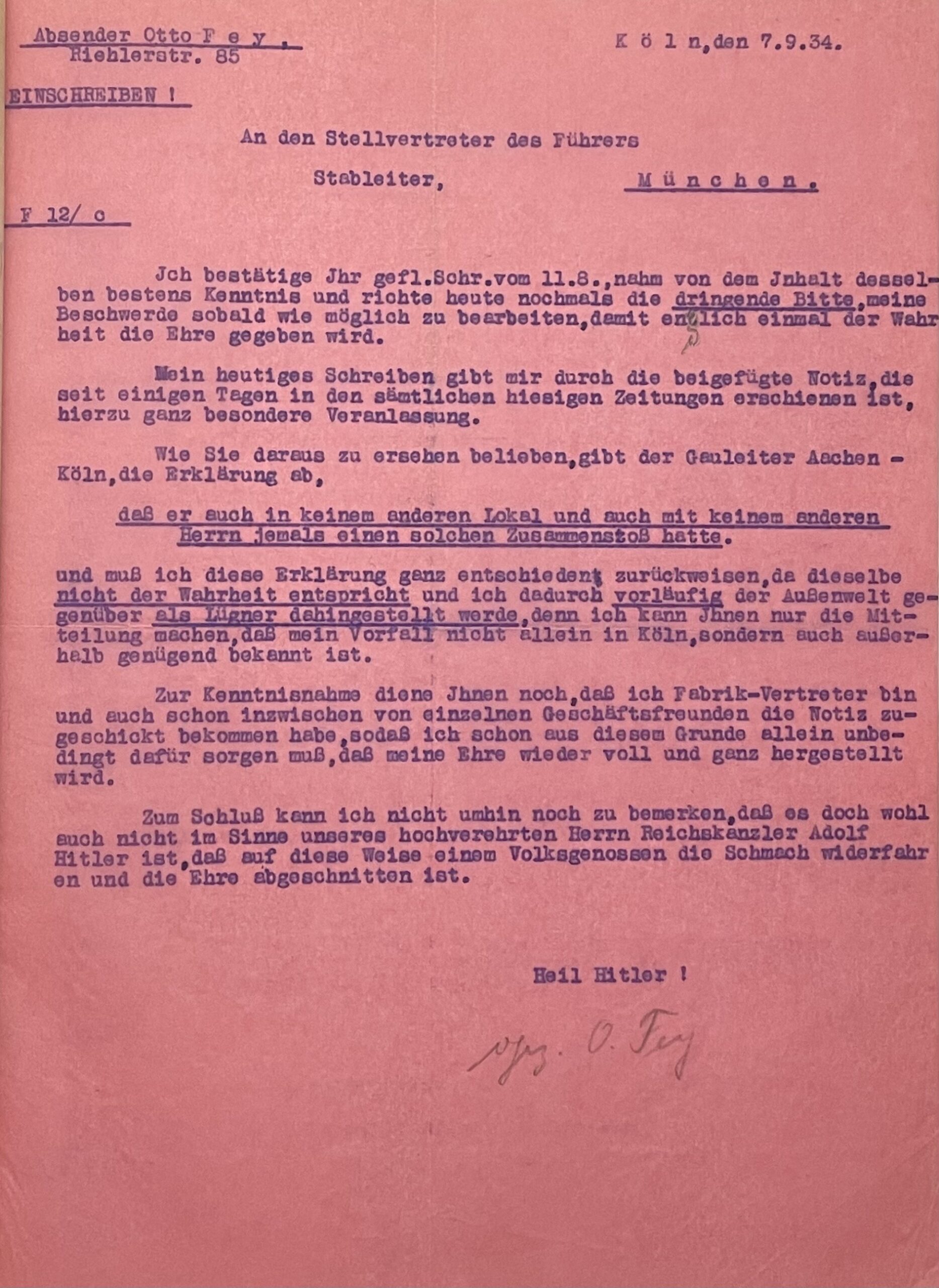 1934 kam es zwischen dem »Funk« Otto Fey und dem Kölner Gauleiter Josef Grohé zum Konflikt.