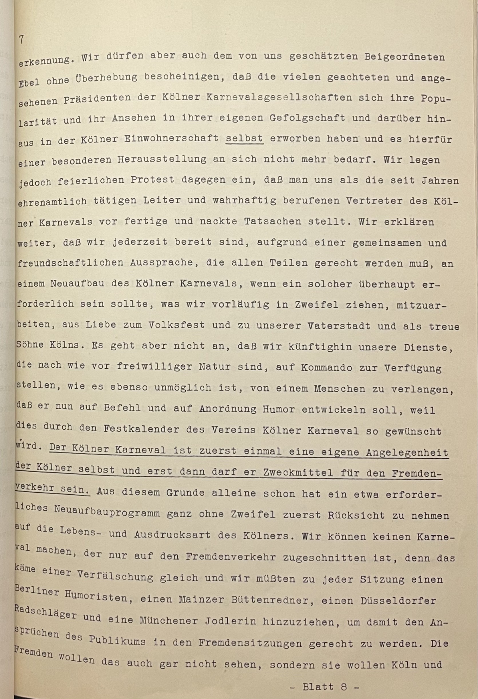 In solchen Auseinandersetzungen fanden NS-Behörden und Verein zu einem gemeinsamen Arrangement – auch, weil beide Seiten vom Karneval profitierten: Der ursprünglich bürgerlich geprägte Karneval wurde im Nationalsozialismus zu einem Volksfest für breitere Bevölkerungsgruppen.