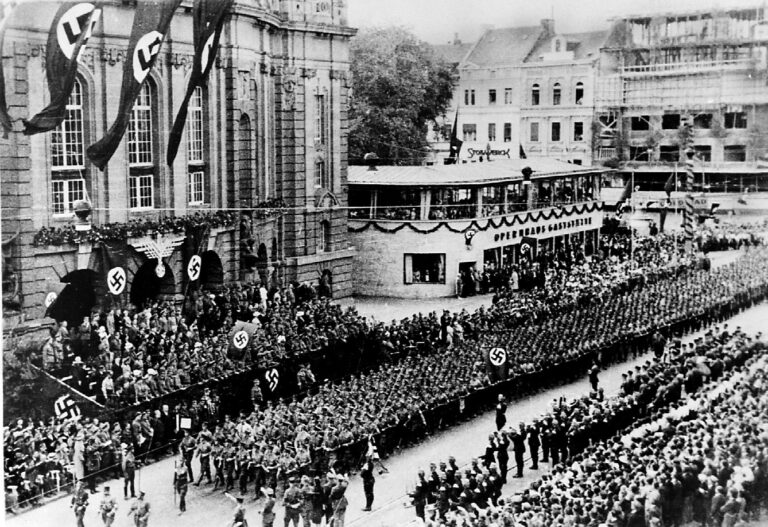 Richtig ist: NS-Funktionäre hielten Reden und NS-Organisationen hielten Paraden ab. Außerdem gab es ein Freizeitprogramm. Die »Toten der NS-Bewegung« wurden geehrt und abends fand ein Fackelzug statt. Gleichzeitig fuhren beleuchtete Schiffskonvois über den Rhein.