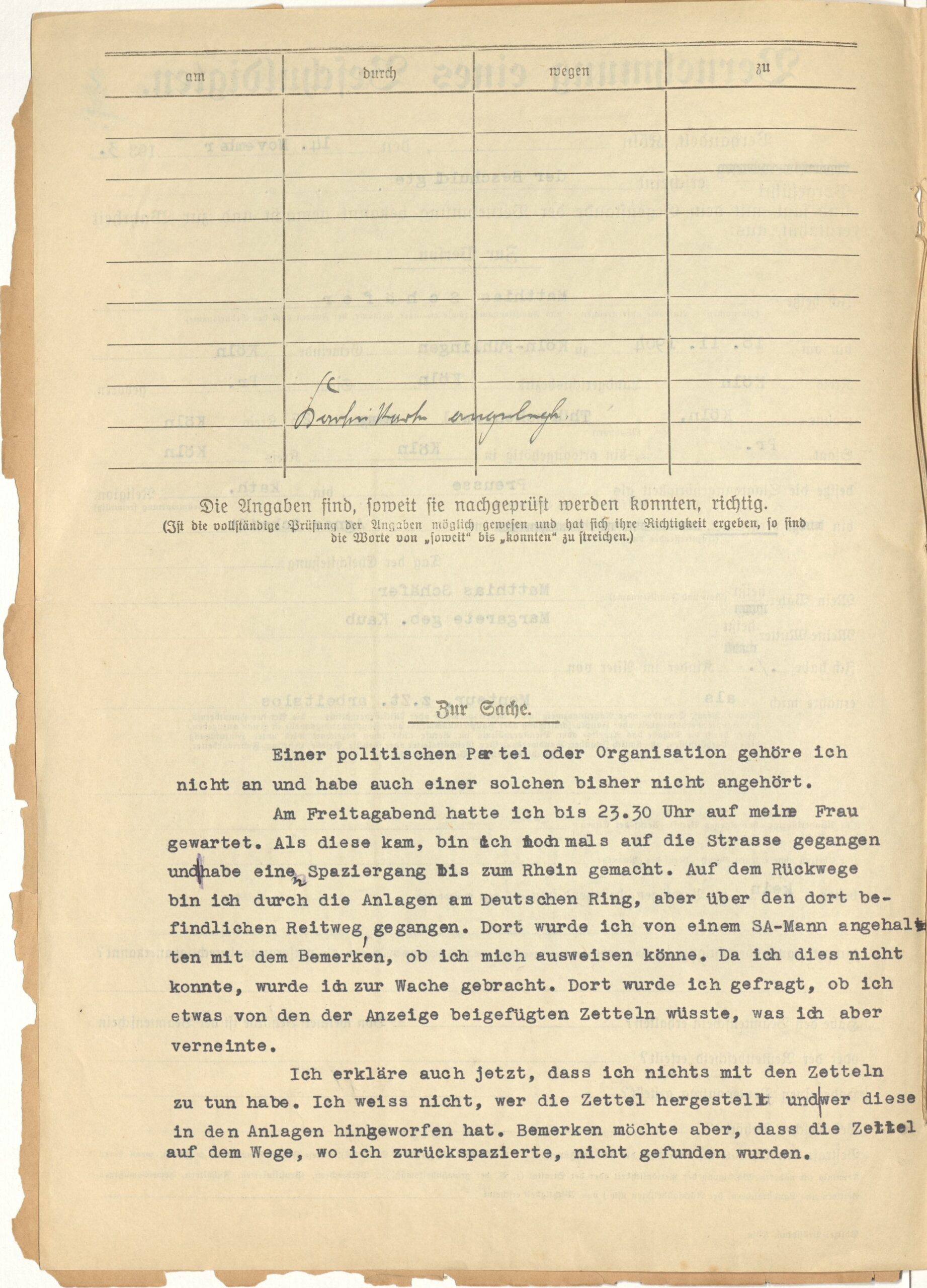 Der Zettel ist ohne weitere Informationen ausgestellt. So kann man nur mutmaßen, was es mit ihm auf sich hat.