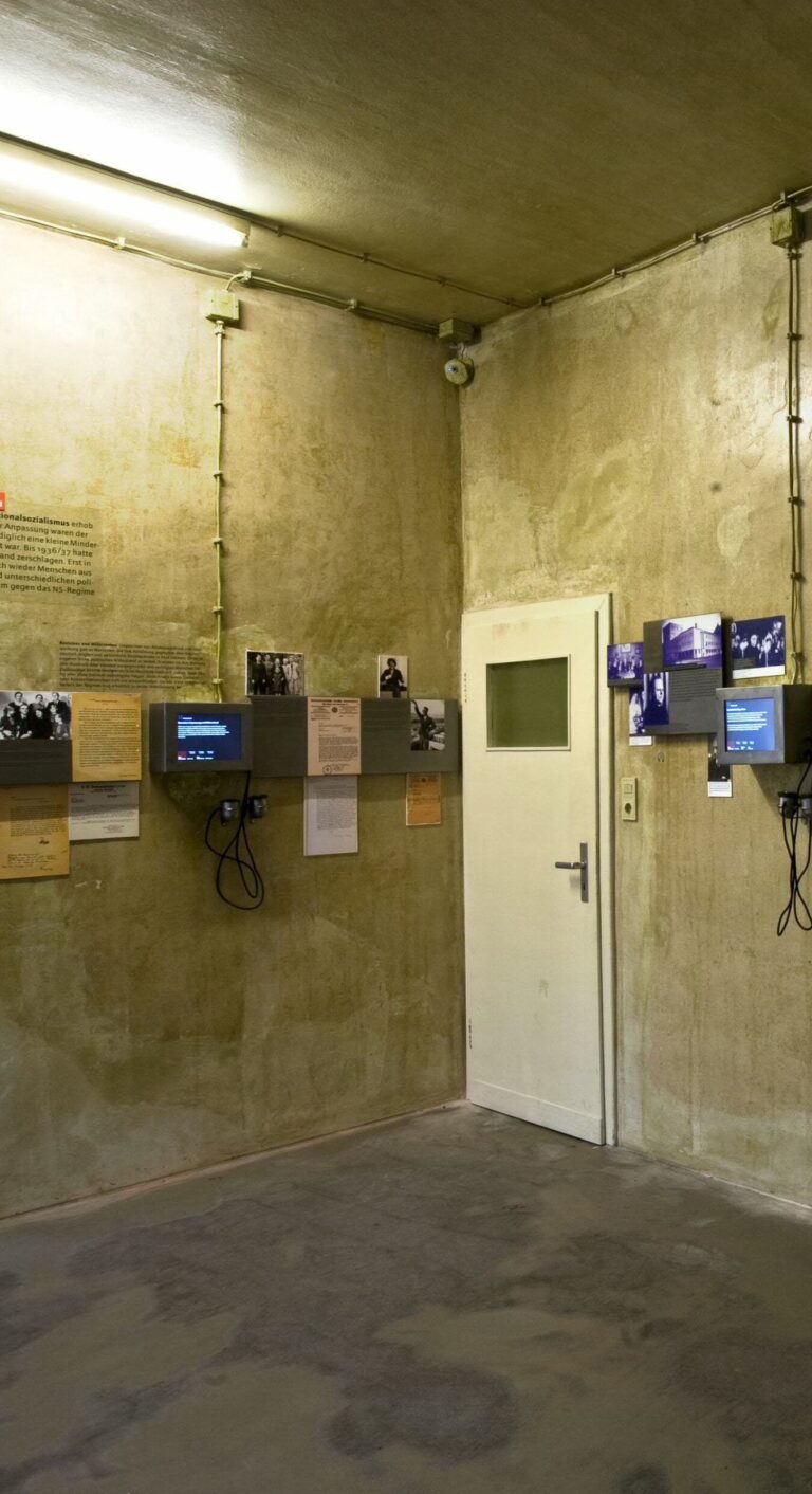 1. Raumansicht © Rheinisches Bildarchiv, rba d018325-24; 2. & 6. Raumansicht © NS-DOK; 3. & 5. Landesarchiv NRW, Abteilung Rheinland, Ger. Rep. 112, Nr. 4459; 4: Theodor-Heuss-Ring 1935 © NS-DOK; 7. & 8. Raumansicht © NS-DOK; 9. Disketten mit Video-Interviews © NS-DOK; 10. Zeitzeugen-Interviews in der Gedenkstätte Bergen-Belsen © Klemens Ortmeyer/Gedenkstätte Bergen-Belsen; 11. Ausstellungsansicht Dokumentation Obersalzberg © Dokumentation Obersalzberg / Kradisch; 12. Ausstellungsansicht »Ausgeschlossen«, Dokumentationszentrum NS-Zwangsarbeit © Dokumentationszentrum NS-Zwangsarbeit; L. Sommerfeld; 13. Ausstellungsansicht »trotzdem da!« © NS-DOK / Jörn Neumann; 14. Ausstellung »Schule im Nationalsozialismus« mit Lernlabor © Stephan Minx/Dokuzentrum Reichsparteitagsgelände